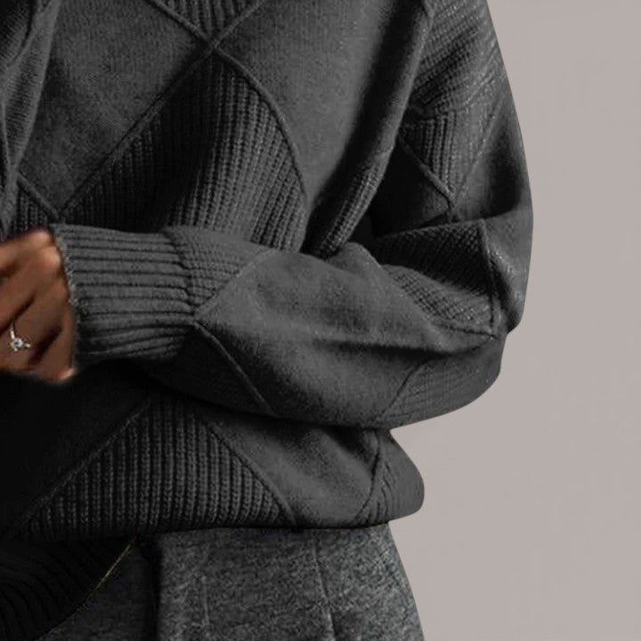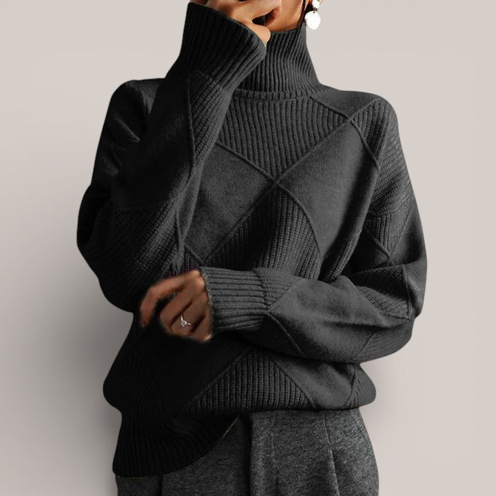 ✔️ Design Sophistiqué : Un col roulé raffiné et des motifs géométriques pour un look chic en toute circonstance.